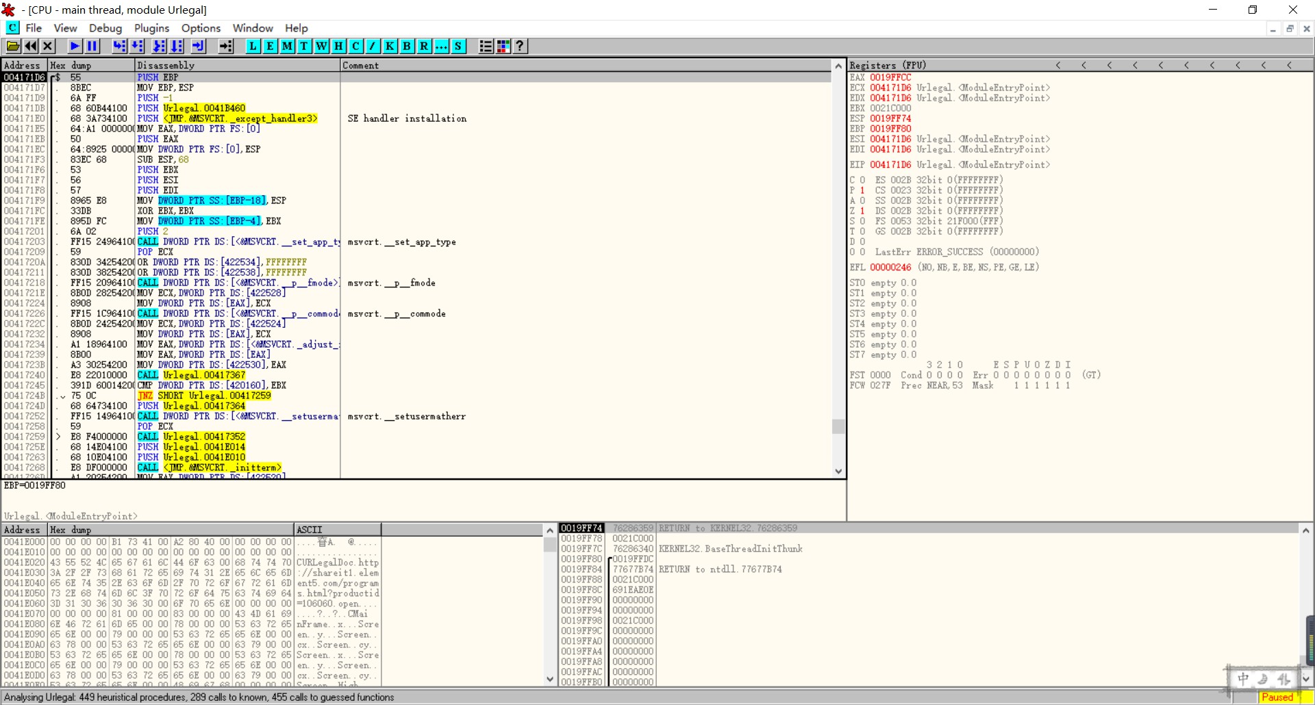 现在运用OD将一个软件(名为URLegal.exe)进行注册码破解。