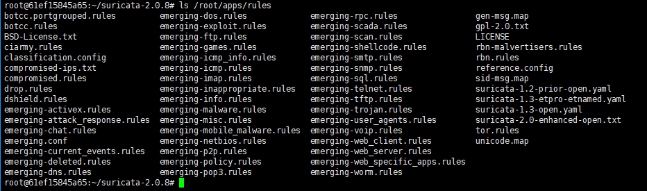 cp /root/apps/rules/* /etc/suricata/rules再将本身自带的规则也添加到/etc/suricata/rules目录。